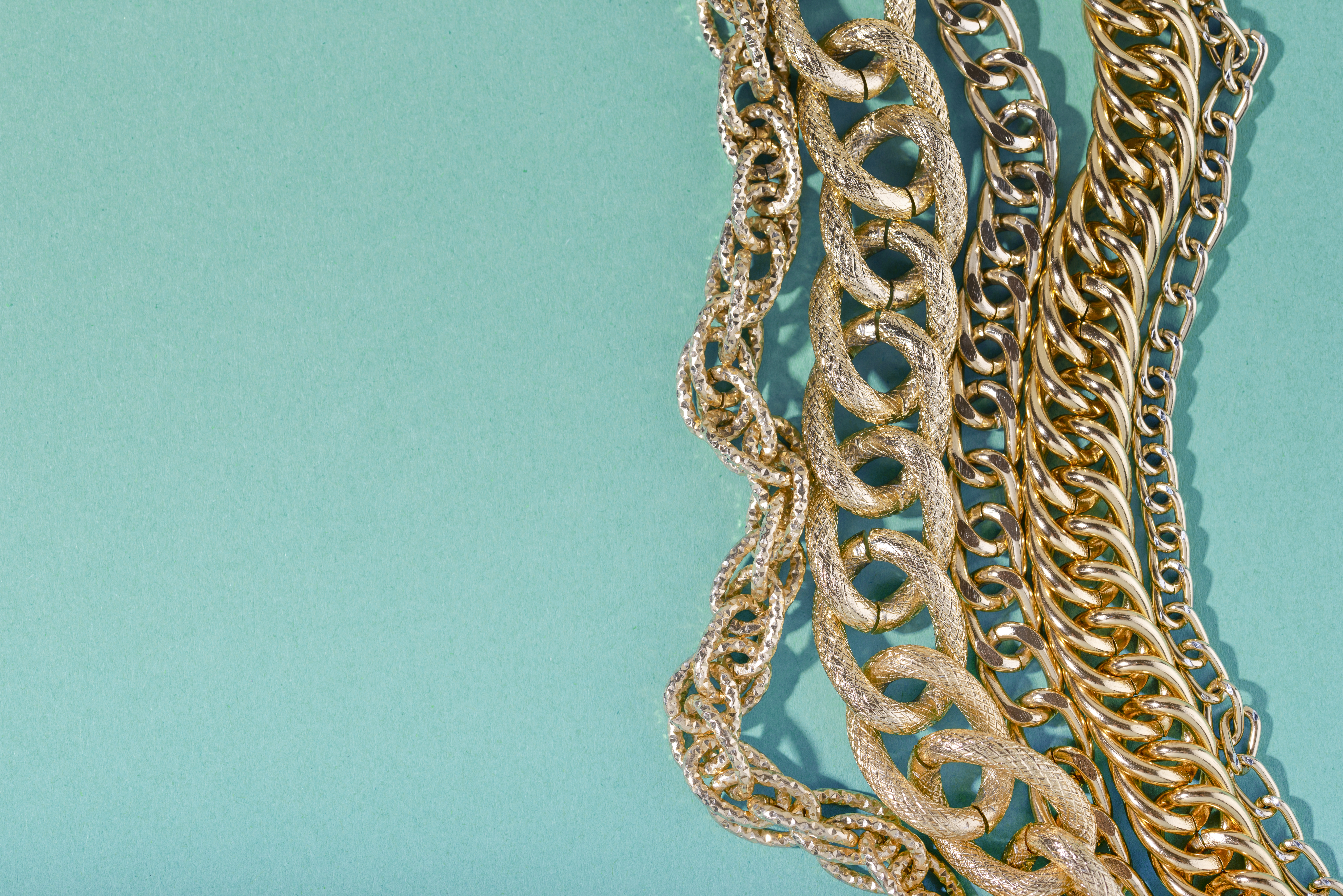 - chaînes, bagues sans valeur particulière, bijoux usés.